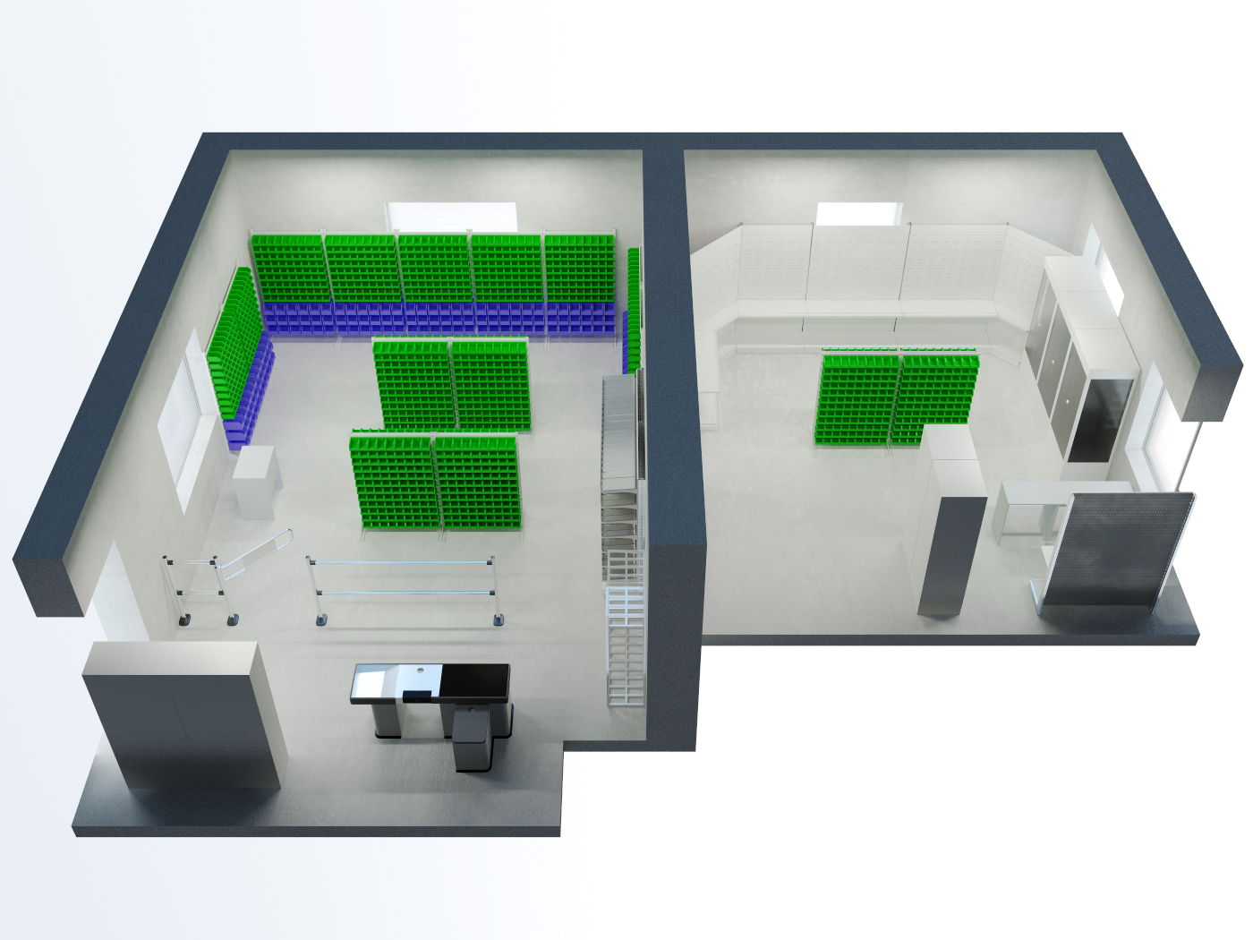 Для удобного размещения товарных запасов в подсобке дополнительно понадобятся складские стеллажи.