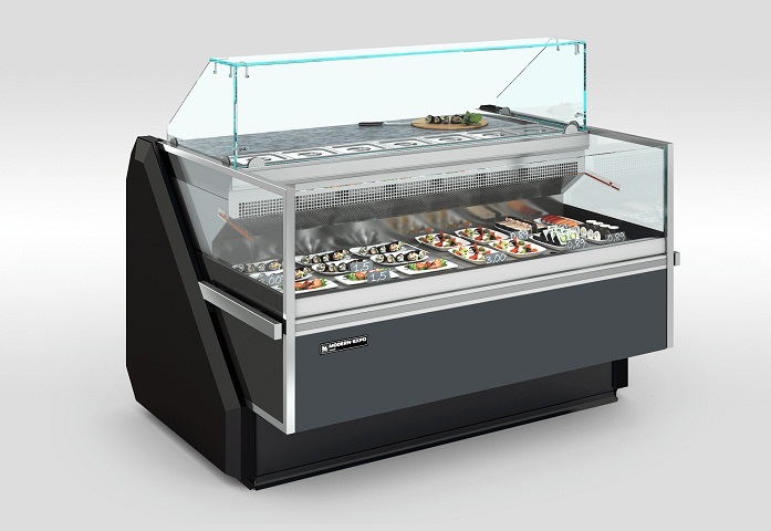 QuadroStream комбинированный - это витрина, которая сочетает в себе рабочую поверхность для приготовления пиццы, суши, салатов и охлаждаемый объем для их демонстрации и продажи.