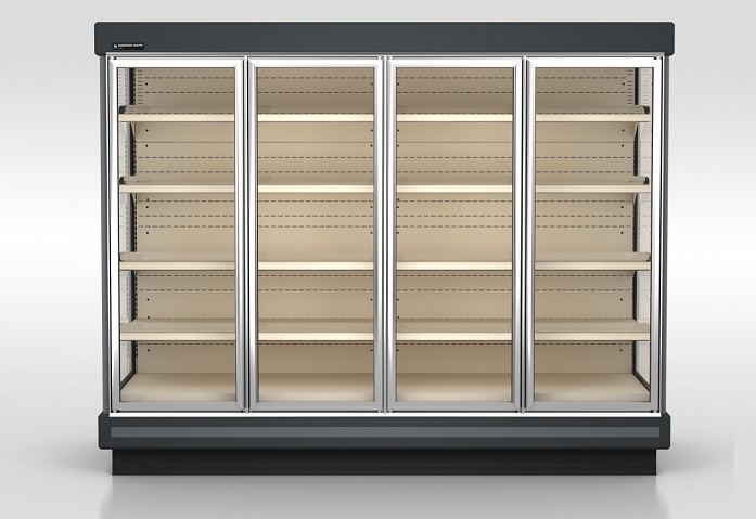 Пристенная витрина Cooljet S с распашными дверьми предназначена для продажи пишевых продуктов в режиме самообслуживания. Наличие дверей снижает энергопотребление витрины.