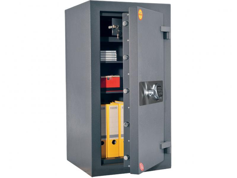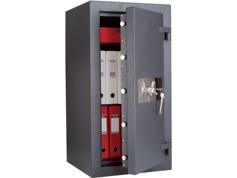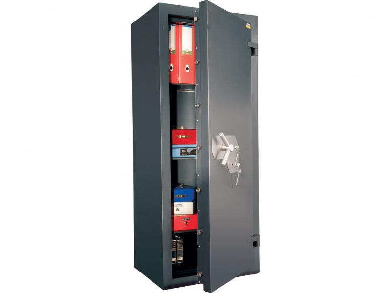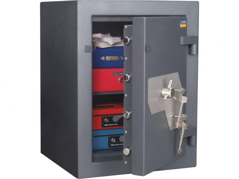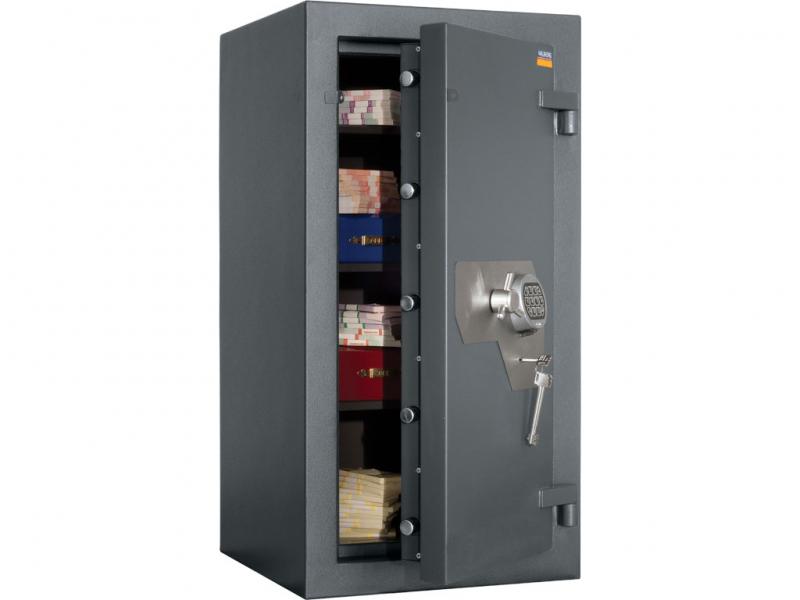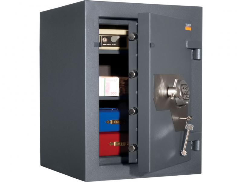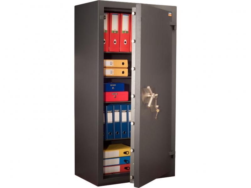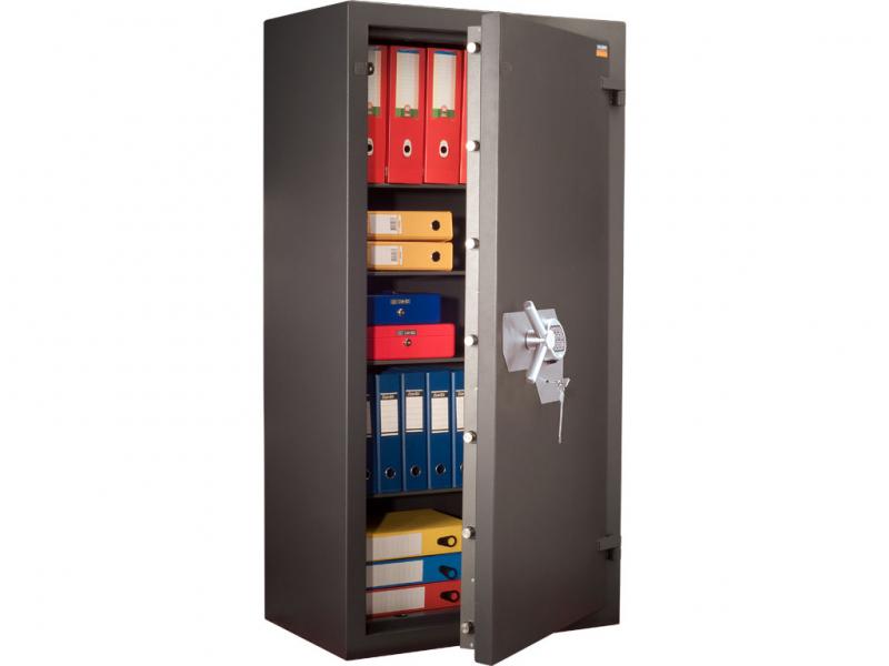 • 5 класс – высокая степень защиты. Такие сейфы предназначены для использования на предприятиях и промышленных помещениях с высокой проходимостью людей. Вес сейфов пятого класса порядка тысячи килограмм. Корпус изготавливается из специальной бронированной стали с использованием фибробетона. Используемые ключевые и кодовые замки имеют высокий уровень надежности и отличаются технической сложностью.