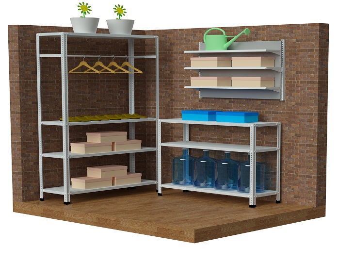 - угловые (подходят для маленьких кладовых и помещений средних размеров);