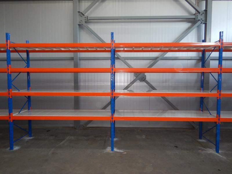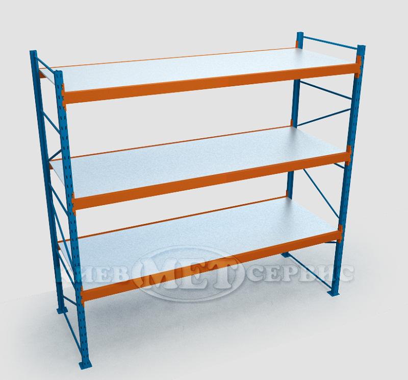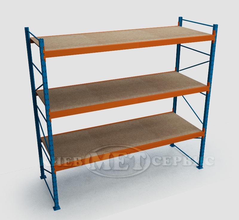 Данный вид стеллажей универсален. Он позволяет хранить грузы на полках выполненных из ДСП, металла или сетки. Полки в свою очередь размещаются либо на самих траверсах, либо в специально выполненных углублениях в траверсах.