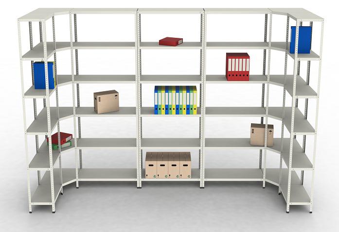 Полки угловые. Являются дополнительными элементами для стеллажей, позволяющими производить их сборку «ступеньками», «уступами», «квадратом» и «углом». Каждая полка имеет дополнительные ребра жесткости.