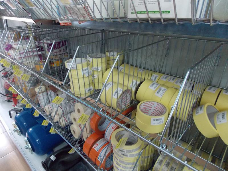 У нас в небольшом супермаркете в поселке такие стеллажи. Удобно выкладывать товар, корзины в меру глубокие, пачки не выпадают. Стеллажи устойчивые и прочные. Цена на них разумная.