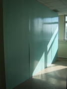 Стеллажи по периметру обшили пластиком – это дало возможность разделить помещение на две зоны, при этом выполнив условие клиента «визуально закрыть» одну зону от другой.