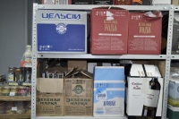 Для магазина, в торговый зал и подсобные помещения, были поставлены полочные стеллажи МС. Максимальная нагрузка на секцию стеллажа составляет до 800 кг и максимально распределенная нагрузка на полку до 150 кг.