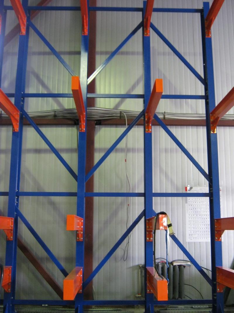 Консольный стеллаж имеет 5 уровней хранения. Наибольшие нагрузки приходятся на первый и второй уровень, до 3 тонн на каждый. Нагрузка на остальные уровни хранения до 1 тонны.