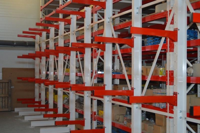 Для аграрной компании были установлены на складе консольные стеллажи для хранения запчастей к сельхозтехнике.