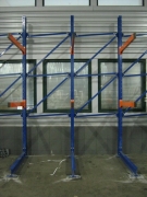 Технические характеристики стеллажей: высота – 3500 мм, вылет консоли – 1260 мм, расстояние между опорами – 1100 мм, три уровня хранения, нагрузка на пару консолей до 450 кг.