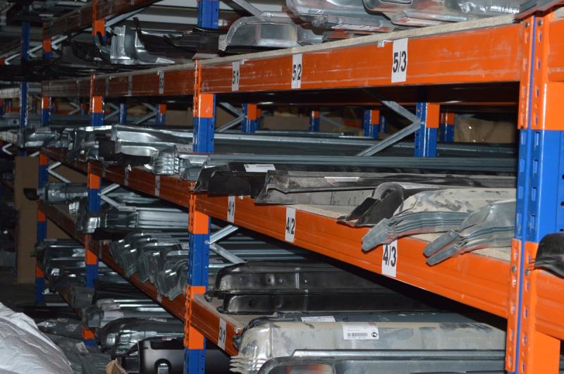 Основная задача мезонина – хранение крупногабаритных автозапчастей (капоты, крылья, бампера, пороги, арки, глушители и т.д.).