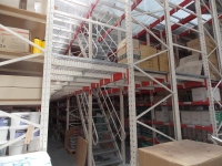 Мезонин высотой 6250 мм имеет три этажа. Хранение товаров происходит на полках. Эта конструкция обеспечивает прямой доступ к товарам, размещенным даже на самых верхних ярусах.