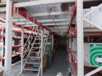 У мезонина две приемные площадки на втором и третьем этажах. Подачу товара на них осуществляет погрузочная техника. И затем вручную товар разносится на соответствующие полки.