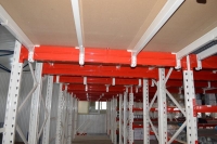 Задействованная высота стеллажей 6700 мм. На некоторых участках стеллажи доходят до потолка помещения, что дает максимально возможное и максимально эффективное использование склада.