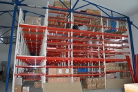Для компании поставщика запчастей для грузовых автомобилей был установлен трехэтажный мезонин, спроектированный на базе паллетных стеллажей.