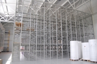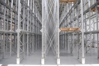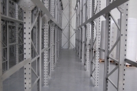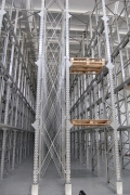 Въездные стеллажи, установленные на площади 180 м2, позволяют хранить товаров общей массой 489 тонн (544 паллеты по 900 кг каждая). Этот вид стеллажей позволяет использовать каждый кубический метр склада с 85% эффективностью.