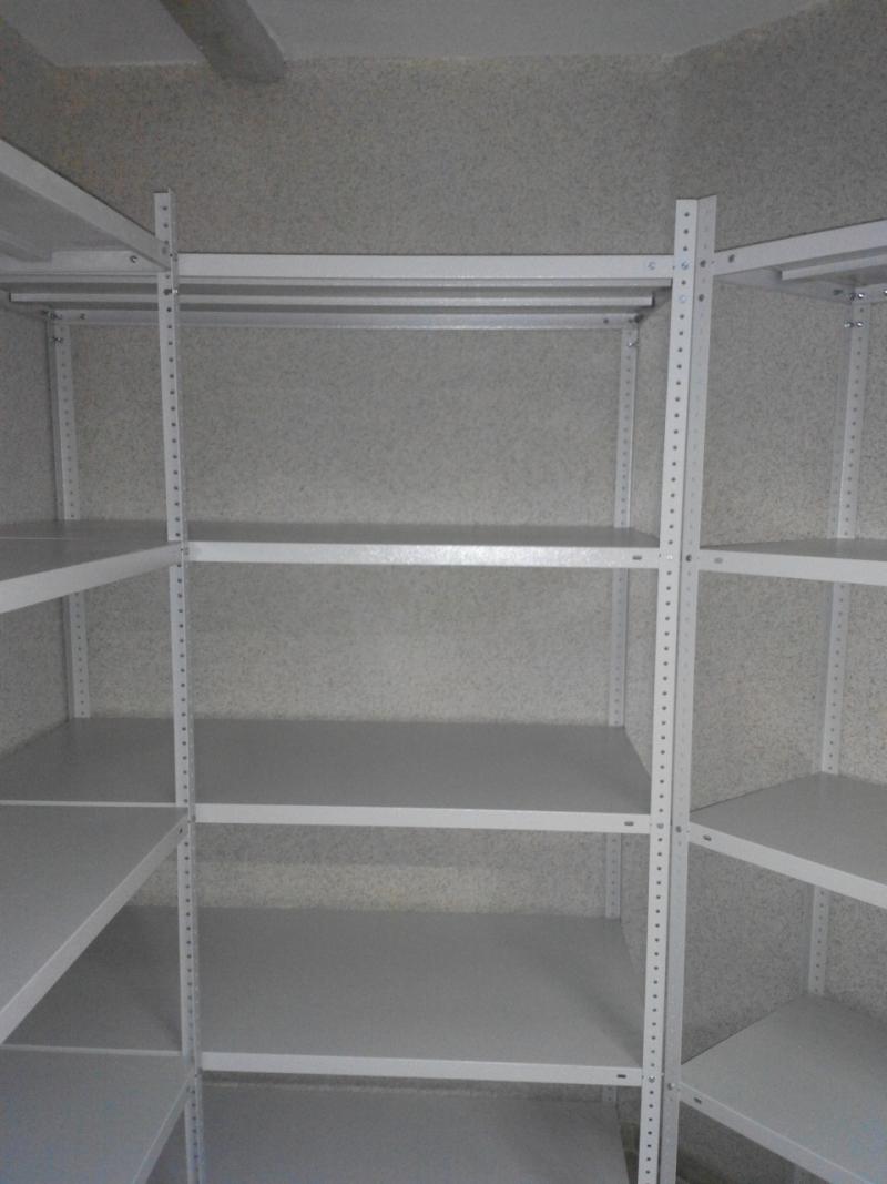 В подсобное помещение частного дома, были установлены полочные стеллажи. Для хранения на полках используются стеллажи МС с нагрузкой на полку до 100 кг. А для хранения покрышек и колес установлен стеллаж КМ400.