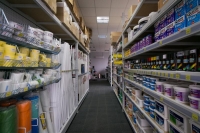Для магазина была разработана концепция на базе торгово-складских стеллажей, данное решение сочетает в себе эффективность и удобство присущее торговым и складским стеллажам.