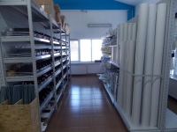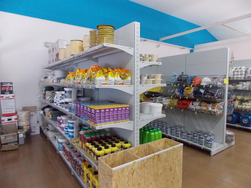 Для демонстрации метизов и тяжелой продукции установлены усиленные стеллажи с выносной стойкой.