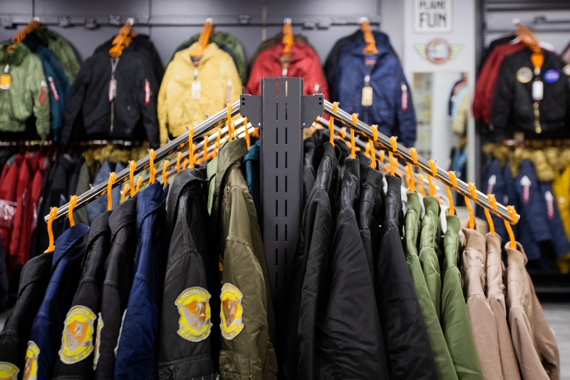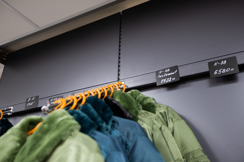 Все стеллажи оборудованы тремпелями и специальными штангами для крепления вешалок под одежду. Цвет стеллажей черный Ral 7015.