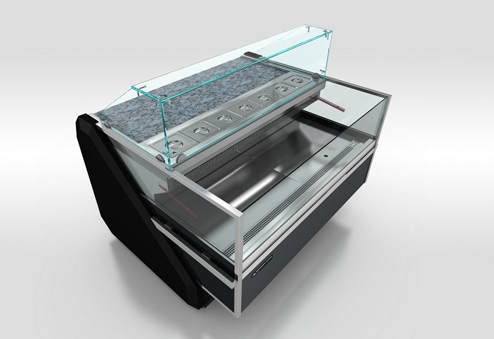 QuadroStream комбінований - це вітрина, яка поєднує в собі робочу поверхню для приготування піци, суші, салатів та обсягу, що охолоджується, для їх демонстрації та продажу.