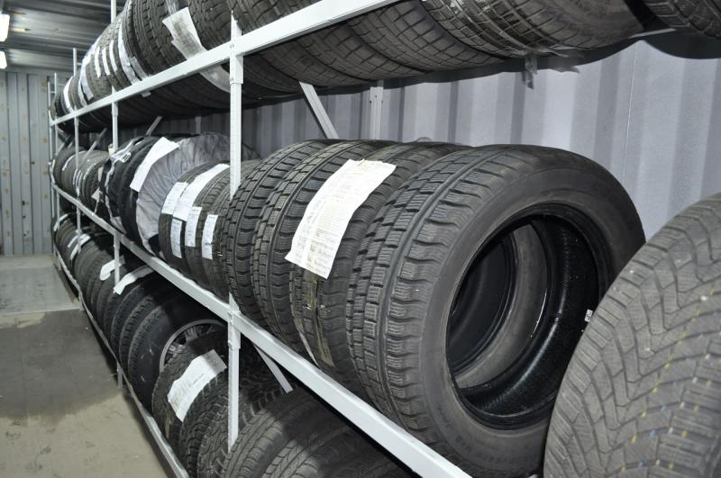 Шинні стелажі – конструкції з перфорованими рамними стійками та горизонтальними траверсами, на яких розміщуються шини (колеса) у вертикальному положенні. Регулюючий механізм дозволяє змінювати відстань між секціями, що дозволяє зберігати покришки з різними габаритами. Стелажі для шин можуть займати одну секцію або виготовлятися як окреме обладнання.