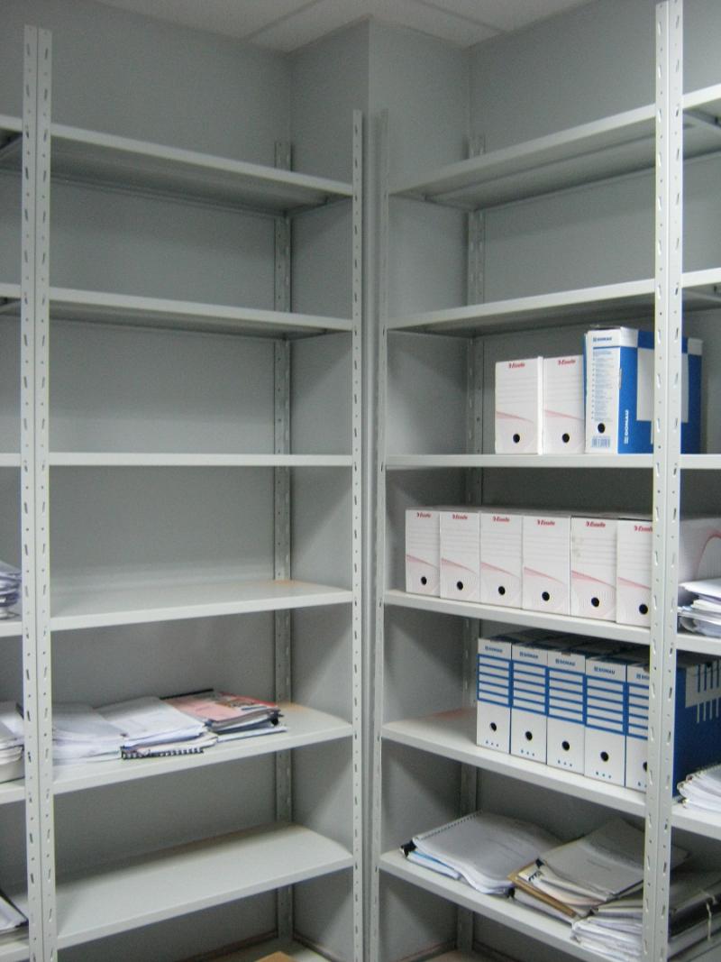 Купил несколько стеллажей на заклепках. Вообще отличный вариант для архива, они очень просто собираются, это можно сделать своими силами. Также легко установить и закрепить. Так что могу смело сказать отличный вариант.