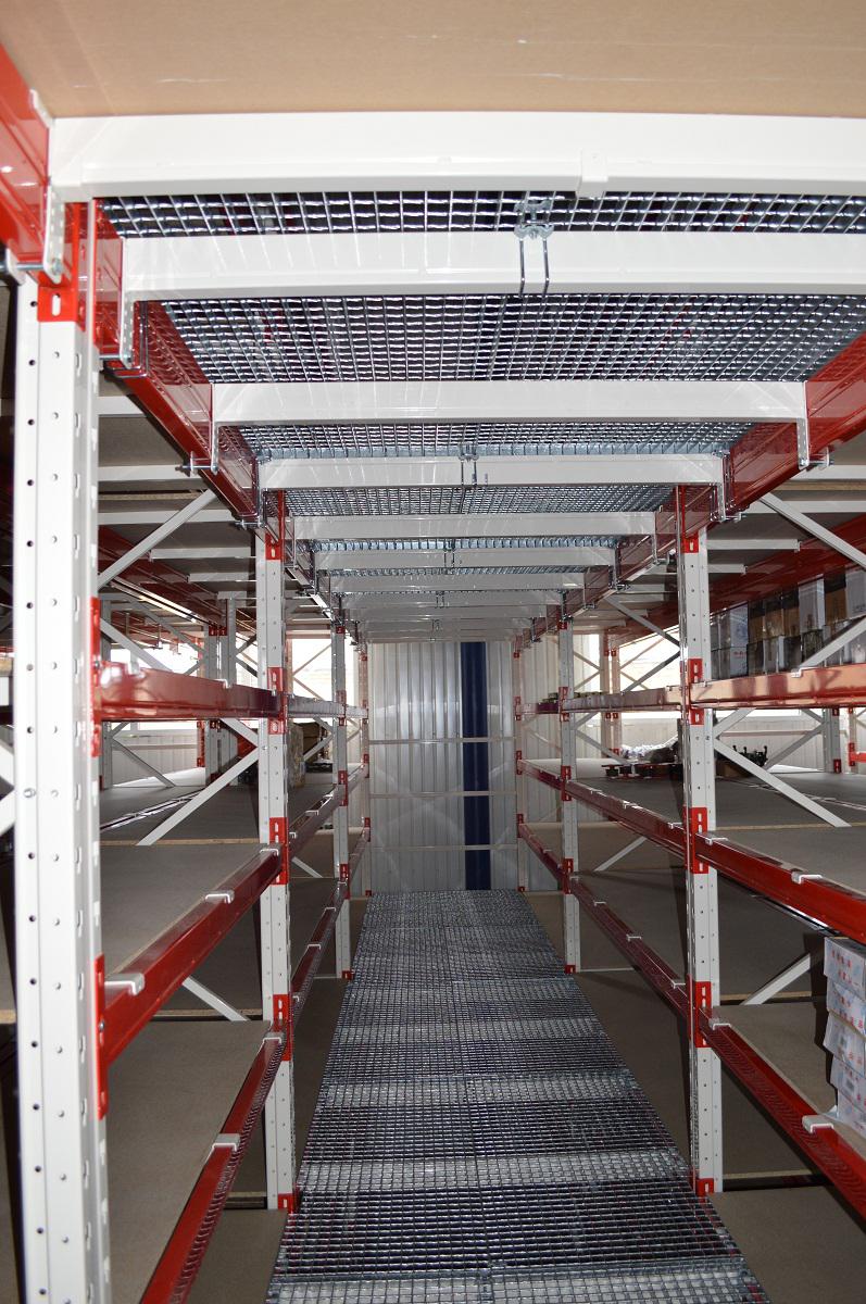 Мезонінні стелажі дозволяють досягати високої ефективності використання всього простору складу завдяки задіянню повної висоти складського приміщення. Побудова нових поверхів конструкції дає можливість збільшити простір, відведений під складування товару вдвічі та більше.