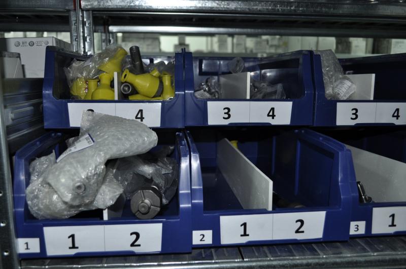 Компанія «КиївМетСервіс» пропонує пластикові ящики для складу різних видів. Вони можуть використовуватися для зберігання будь-яких дрібних виробів (метизів, електричних роз'ємів і клем, підшипників тощо) на спеціальних стелажах з траверсами.