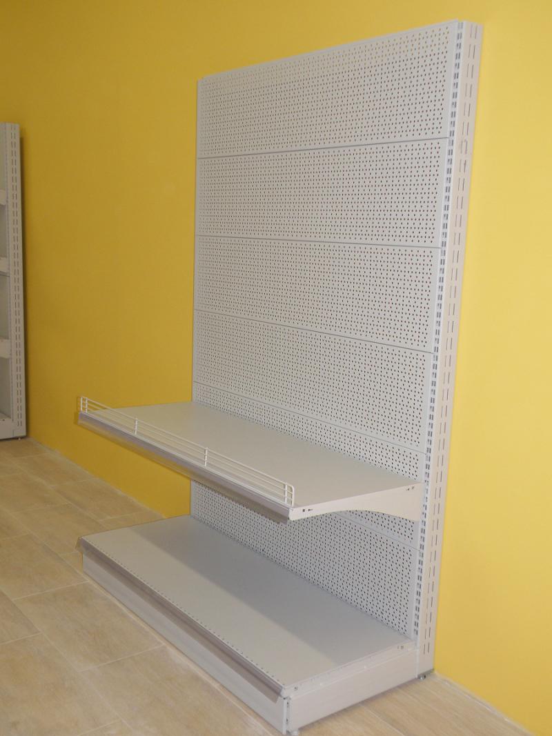 Одним із найбільш затребуваних видів обладнання для магазинів є стелажі з перфорацією стін. Це досить універсальний тип стелажів, придатний для презентабельної викладки найрізноманітнішого товару, що вимагає подання саме у вертикальній площині. Спеціальні отвори в стінках, розташовані в певному порядку, дозволяють навішувати на стелаж гачки різної форми та довжини для подання покупцю снеків та чіпсів, насіння, батарей та іншого товару електротехнічного призначення, а також виробів промислової групи, що продаються поштучно.