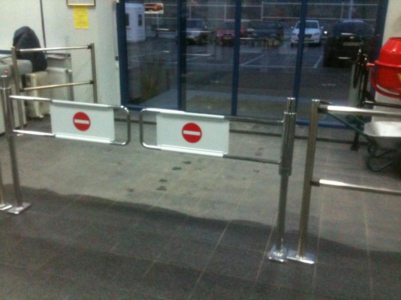 поворотного прапорця або рамки, яких при широкому проході може бути 2 штуки (на кожній стійкі, що обмежує вхід до торгового залу).