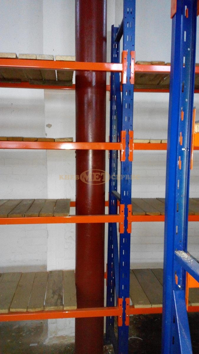 Основні характеристики стелажів: висота – 2500 мм, глибина 800 мм, ширина секцій – 2700 мм, 4 полиці, рівномірно розподілене навантаження на полицю – до 200 кг.