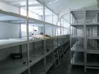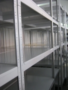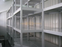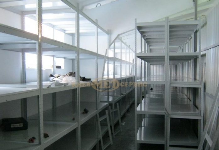 Основні характеристики стелажів: висота – 2600 мм, 5 полиць, навантаження на полицю до 150 кг. Каркас стелажів та полиці пофарбовані порошковою фарбою.
