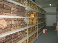 Поличкові стелажі КМ400: висота – 3000 мм, ширина секцій – 2100 мм, глибина – 800 мм, 6 рівнів поличного зберігання, навантаження на один рівень зберігання до 400 кг.