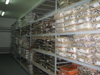 Палетні стелажі: висота – 6700 мм, ширина секцій – 2700 мм, глибина – 850 мм, 4 рівні зберігання + підлога, навантаження на один рівень зберігання до 1100 кг.