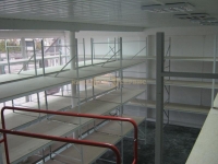 Для будівельної компанії НСТ Крим було обладнано склад стелажами для підвищених навантажень КМ 400. Унікальність проекту полягала в тому, що клієнт замовив стелажі висотою 2500 мм. В процесі експлуатації було відмічено, що використовується не вся висота складу і клієнт звернувся повторно до нашої компанії з питанням збільшення висоти стелажів до 4000 мм. Конструктори компанії КиївМетСервіс запропонували наростити конструкцію у висоту на стелажах, що використовуються. Нарощування провели використовуючи спеціальні перехідники, через які профіль рам скріплювався між собою. Додатково секції стелажів закріпили до стіни анкерами.