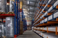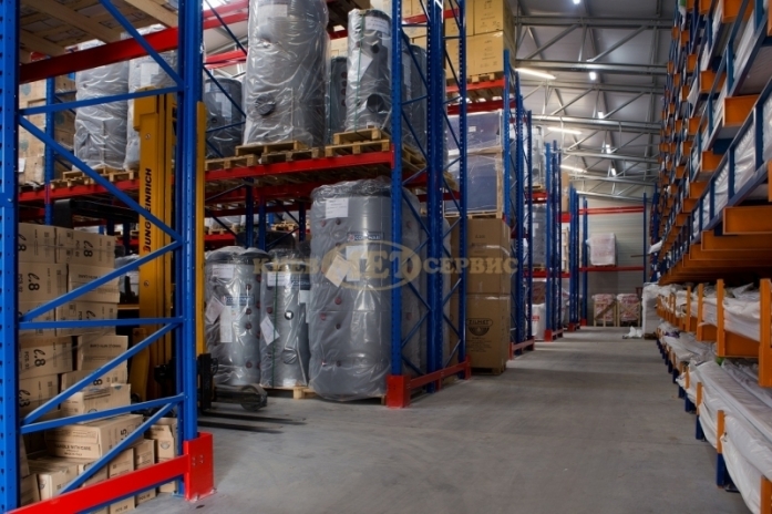 На другий склад встановлено палетні стелажі, на яких зберігаються великогабаритні товари для сантехніки.