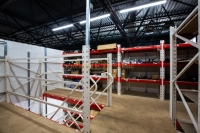 Для обмеження доступу до товару, який зберігається на мезоніні, по всьому периметру мезонін обшитий плитами з OSB і на вході встановлені двері.