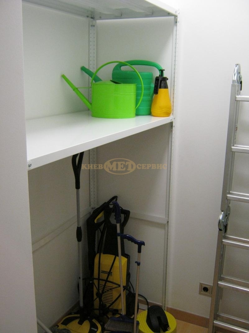До приватного будинку, котеджного містечка «Сонячна долина», було поставлено поличкові стелажі. Завдання – забезпечити зберігання речей на полицях у підсобних приміщеннях будинку. Для зберігання важких вантажів (навантаження до 300 кг) та покришок було встановлено поличкові стелажі КМ400. Для легших вантажів (навантаження до 100 кг) було встановлено поличкові стелажі МС.