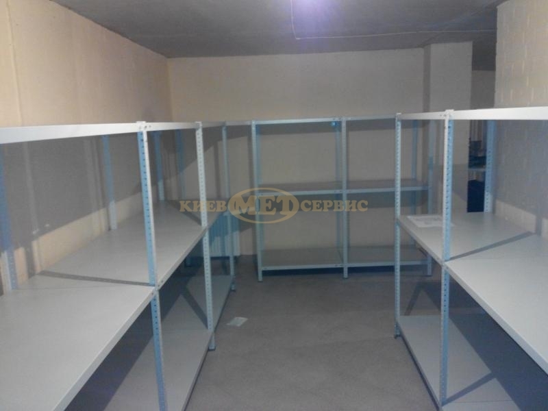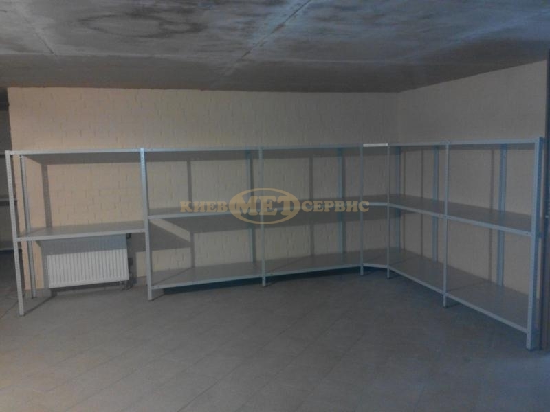 У приватний будинок було встановлено поличкові стелажі МС навантаженням на полицю до 100 кг. Стелажі були змонтовані та розставлені по контуру стін приміщення. Особливо хочеться відзначити, що даний вид стелажів дозволяє повністю повторити геометрію приміщення, що видно на фотографії розміщення стелажів вздовж стіни, що має дугову форму.