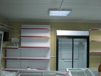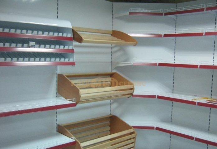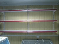 Для того, щоб використовувати площу торгового приміщення по максимуму, в місцях над вікнами та над холодильним обладнанням встановлені настінні стелажі.