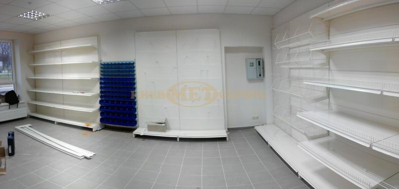 Встановлено стелажі різних типів: пристінні, перфоровані, з корзинами, стелаж пластикової тари.