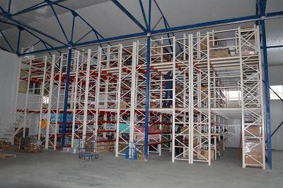 Трехэтажные мезонинные стеллажи